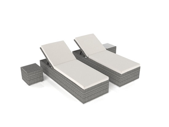Do you like the sound of pure relaxation without any fuss? Then the LIKRIS L rattan garden lounger set is exactly right for you. This relaxation lounger set- complete with adjustable headrests - is everything you'll need to take some time out from a busy day. The LIKRIS L rattan garden lounger set can be assembled almost anywhere. Why not create a relaxation haven in your conservatory, on the patio, or beside the garden pond? Stretch out for a while on the balcony or beside the pool! The set consists of 2 loungers and 2 side tables. The lightweight, corrosion-resistant, powder-coated aluminium frame and the strong, weatherproof rattan fibre makes LIKRIS L ideal for use outdoors. The sturdy rattan material is UV-resistant and woven by hand, which is what makes this premium, high-quality lounger set unique. The cushion covers are made from 100% polyester and the filling is made of foam.