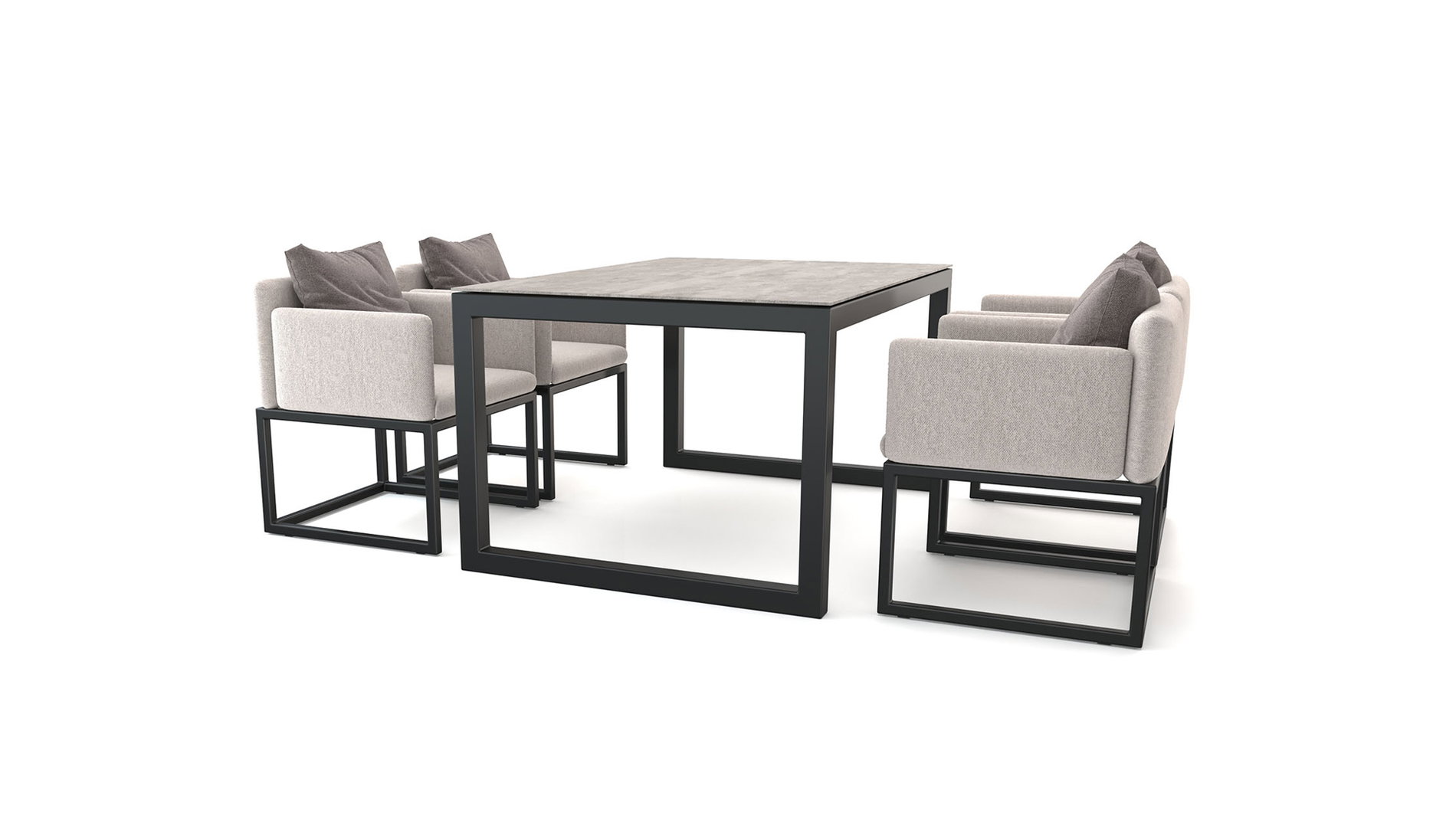 Das Soyo Dining L Esstisch-Set ergänzt den preisgekrönten Soyo L perfekt. Mit Platz für 6 Gäste, eleganter Tischplatte und komfortablen Stühlen, ist es ideal für stilvolle Abendessen im Freien und ein Highlight in jeder Umgebung.