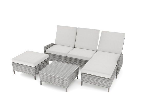 Versatile, affordable and great to look at, the Pimena was so popular and in such demand in Germany that we had to bring it over to the UK. Joining our much-loved New Classics Collection, the Pimena is a 3-seater sofa with adjustable backrests, giving you the option of sunbathing or sitting upright for drinks. A glass-topped table will accommodate all your needs, while an extra foot stool, with a thick cushion on top, will make sure everyone is comfortable.