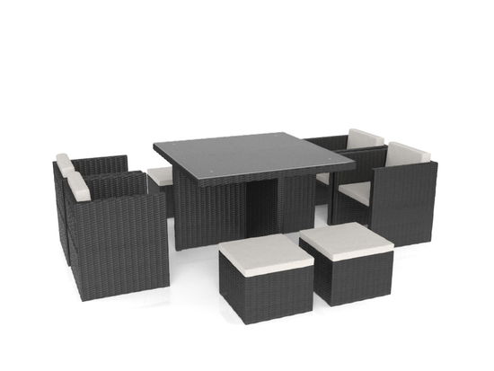 Our wonderful BOREAS M Cube Dining Set combines clever design with ultimate practicality. This space-saving set features a dining table with 4 chairs and 4 stools, so designed that the stools can be stored under the chairs and the chairs under the table itself.